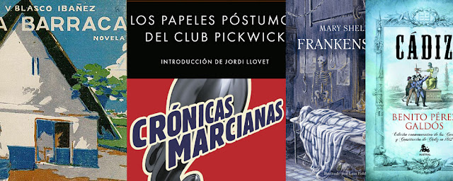 Los papeles póstumos del Club Pickwick (Charles Dickens), Cádiz (Benito Pérez Galdós), Los miserables (Víctor Hugo), Crónicas marcianas (Ray Bradbury), La barraca (Vicente Blasco Ibáñez), Rebelión en la granja (George Orwell), Frankenstein (Mary Shelley), La guerra de los mundos (HG Wells), Por quién doblan las campanas (Ernest Hemingway)... Son sólo una pequeña muestra de todos los libros de los que hemos hablado este año en ARÁCNIDOS Y VISIGODOS. Una mezcla de autores en castellano y en otros idiomas que componen un suculento menú para cualquier amante de la buena literatura.